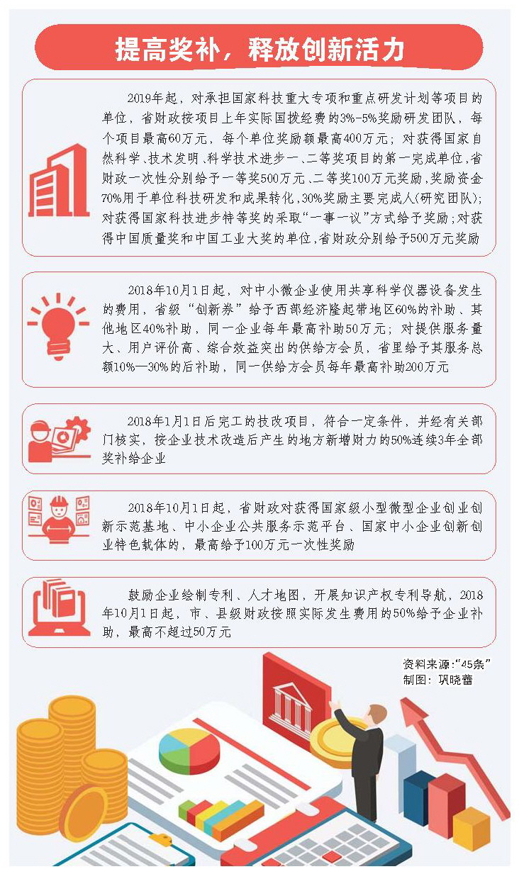 振興實(shí)體經(jīng)濟(jì),實(shí)現(xiàn)動(dòng)能轉(zhuǎn)換,創(chuàng)新是第一動(dòng)力。“45條”大力鼓勵(lì)科技創(chuàng)新,讓科研人員拿雙份獎(jiǎng)金、走綠色通道。
