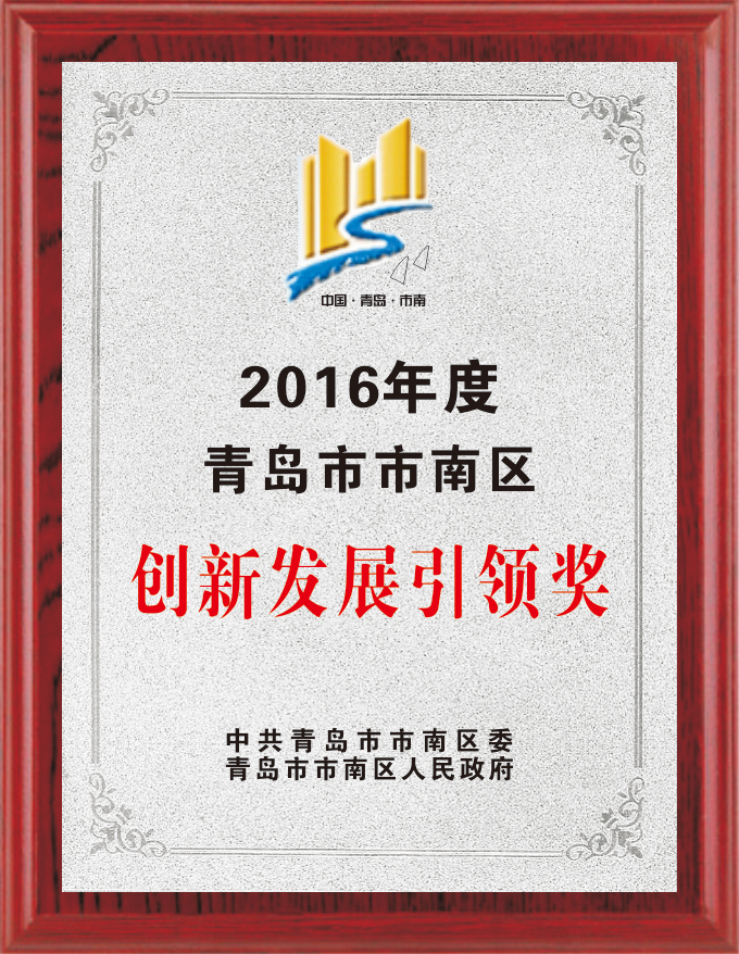 2016年度青島市市南區(qū)創(chuàng)新發(fā)展引領(lǐng)獎(jiǎng)