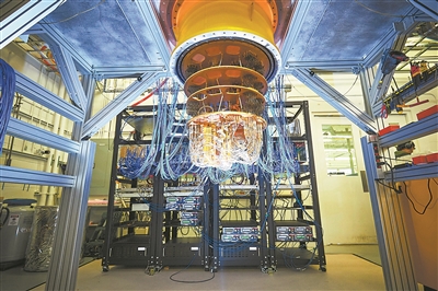 新成果有望使量子計算機變得更實用。圖為安裝在低溫室的谷歌量子計算機。圖片來源:物理學(xué)家組織網(wǎng)