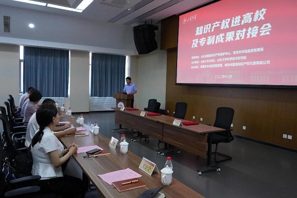 7月10日,由山東省國(guó)家知識(shí)產(chǎn)權(quán)保護(hù)中心、青島市市場(chǎng)監(jiān)督管理局指導(dǎo),山東大學(xué)(青島)、山東大學(xué)科學(xué)技術(shù)研究院主辦,青島市即墨區(qū)市場(chǎng)監(jiān)督管理局、青島華慧澤知識(shí)產(chǎn)權(quán)代理有限公司協(xié)辦的“知識(shí)產(chǎn)權(quán)進(jìn)高校暨專利成果對(duì)接會(huì)”在山東大學(xué)青島校區(qū)成功舉辦。會(huì)前,山東大學(xué)校長(zhǎng)李術(shù)才與青島市市場(chǎng)監(jiān)督管理局局長(zhǎng)張?jiān)佈銜?huì)面,親切交談。青島校區(qū)黨工委副書(shū)記宋作標(biāo)致歡迎辭,青島市市場(chǎng)監(jiān)督管理局局長(zhǎng)張?jiān)佈?、山東省國(guó)家知識(shí)產(chǎn)權(quán)保護(hù)中心副主任尹強(qiáng)民出席活動(dòng)并致辭。青島市市場(chǎng)監(jiān)督管理局知識(shí)產(chǎn)權(quán)促進(jìn)處處長(zhǎng)欒華、知識(shí)產(chǎn)權(quán)保護(hù)處副處長(zhǎng)安鍇,國(guó)家知識(shí)產(chǎn)權(quán)局戰(zhàn)略規(guī)劃司二級(jí)主任科員蘇強(qiáng),山東省國(guó)家知識(shí)產(chǎn)權(quán)保護(hù)中心預(yù)審一部部長(zhǎng)牟若楠,青島市即墨區(qū)市場(chǎng)監(jiān)督管理局副局長(zhǎng)刁艷艷、知識(shí)產(chǎn)權(quán)科科長(zhǎng)喬杰先,青島華慧澤知識(shí)產(chǎn)權(quán)代理有限公司董事長(zhǎng)張萬(wàn)偉出席,青島校區(qū)科研管理辦公室副主任兼科學(xué)技術(shù)研究院副院長(zhǎng)王志寧主持活動(dòng)。山東大學(xué)科學(xué)技術(shù)研究院、技術(shù)轉(zhuǎn)移中心、青島校區(qū)科研管理辦公室負(fù)責(zé)人及相關(guān)人員,部分學(xué)院領(lǐng)導(dǎo)及專家代表,創(chuàng)新型企業(yè)負(fù)責(zé)人,共80余人參加活動(dòng)。