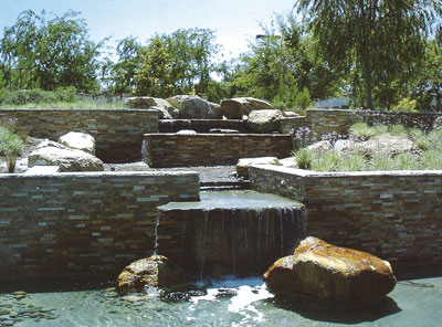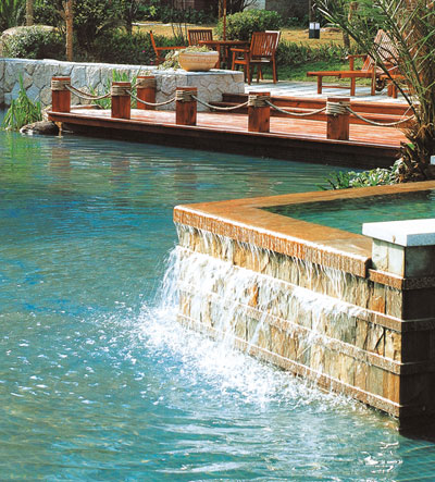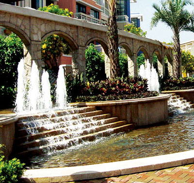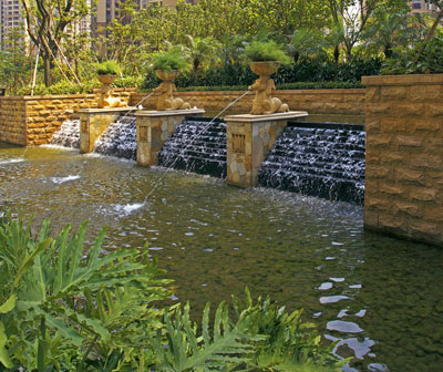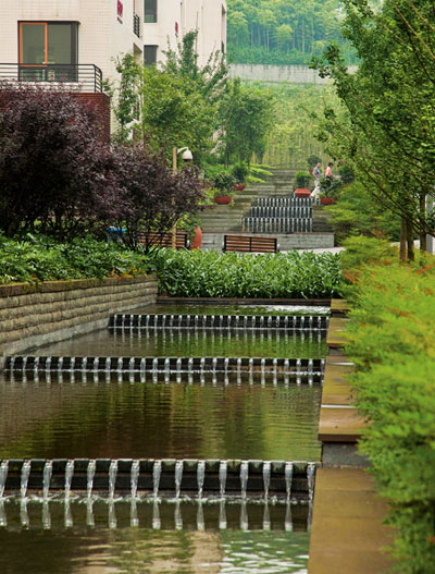 俗話說“石令人古,水令人遠”、“有山皆是園,無水不成景”,可見巧奪天工的假山、高低錯落的臺階、清脆悅耳的潺潺流水等元素在人居景觀園林綠地建設(shè)中的重要地位,它們能給人以回歸自然的享受。因此,本文將對房地產(chǎn)、公園等園林綠地中的較為優(yōu)秀的疊水設(shè)計進行展示。由于園林形式的多樣,產(chǎn)生了不同規(guī)格、形狀、功能的疊水方案: