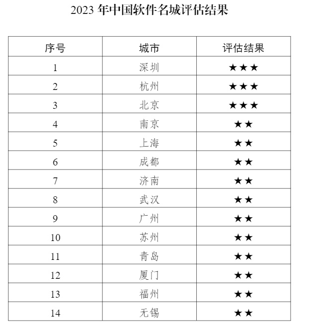 為深入貫徹國(guó)家軟件發(fā)展戰(zhàn)略,落實(shí)軟件規(guī)劃、行動(dòng)計(jì)劃等產(chǎn)業(yè)政策,進(jìn)一步擦亮中國(guó)軟件名城品牌,工業(yè)和信息化部組織開展2023年度名城評(píng)估工作。根據(jù)評(píng)估結(jié)果,青島市獲評(píng)二星級(jí)中國(guó)軟件名城,在14個(gè)名城中位列第11位,有關(guān)工作得到部領(lǐng)導(dǎo)和評(píng)估專家高度認(rèn)可。深圳、杭州、北京獲評(píng)三星級(jí)名城。