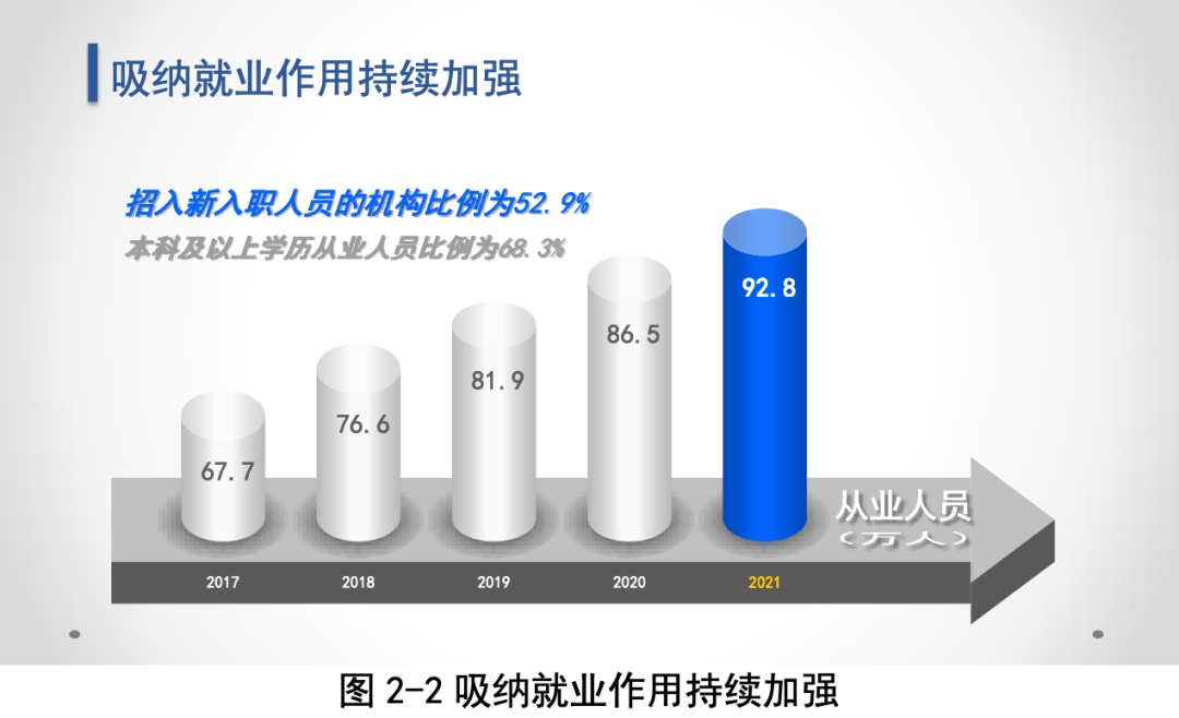 據(jù)統(tǒng)計,截至2021年底,我國知識產(chǎn)權(quán)服務(wù)業(yè)從業(yè)人員約92.8萬,較2020 年底增長7.3%,吸納就業(yè)作用明顯。調(diào)查顯示,知識產(chǎn)權(quán)服務(wù)業(yè)從業(yè)人員中,大學(xué)本科及以上學(xué)歷比例為68.3%,從業(yè)人員學(xué)歷層次較高。