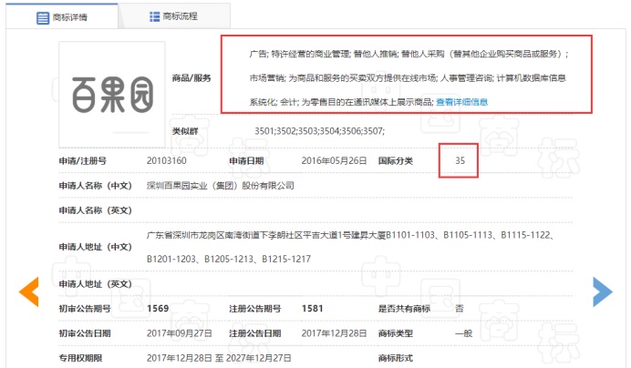 例如5類醫(yī)藥+35類藥店、25類服裝+35類服裝店、20類家具+35類家具店等等,就連43類餐飲服務都得加一個35類,誰讓35類里面有一項“飯店商業(yè)管理”服務呢。