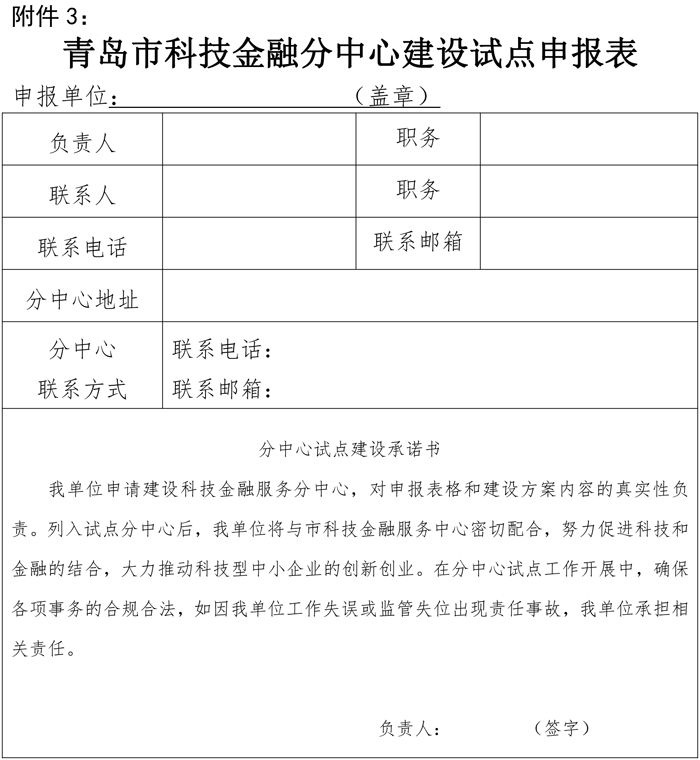 3.青島市科技金融分中心建設(shè)試點(diǎn)申報(bào)表